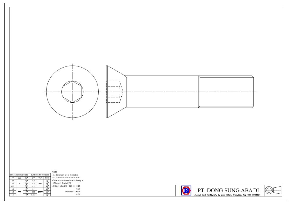 A countersunk socket head bolt is a threaded fastener with a flat, conical head designed to sit flush with or below the mating surface when installed in a countersunk hole. The internal hex socket allows high torque application while maintaining a clean, low-profile appearance.