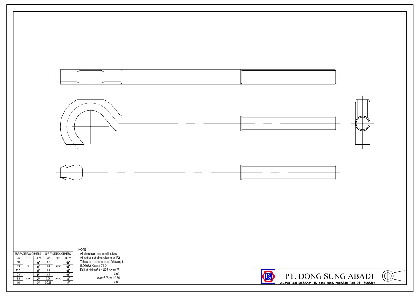 A setting hook bolt is a bent fastener featuring a hook-shaped end and a threaded shank, designed to anchor into concrete, masonry, or structural elements while providing a threaded connection for hanging, tensioning, or securing components. The hook end provides mechanical anchorage that resists pull-out once embedded or set.